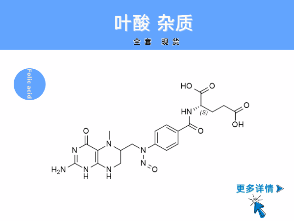 卓越医药供应叶酸杂质对照品,包括叶酸亚硝胺杂质系列、叶酸USP/EP杂质、手性/立体异构体杂质以及其他结构类似物等。助力制药企业对包括这些在内的潜在杂质进行精准识别、分析评估等